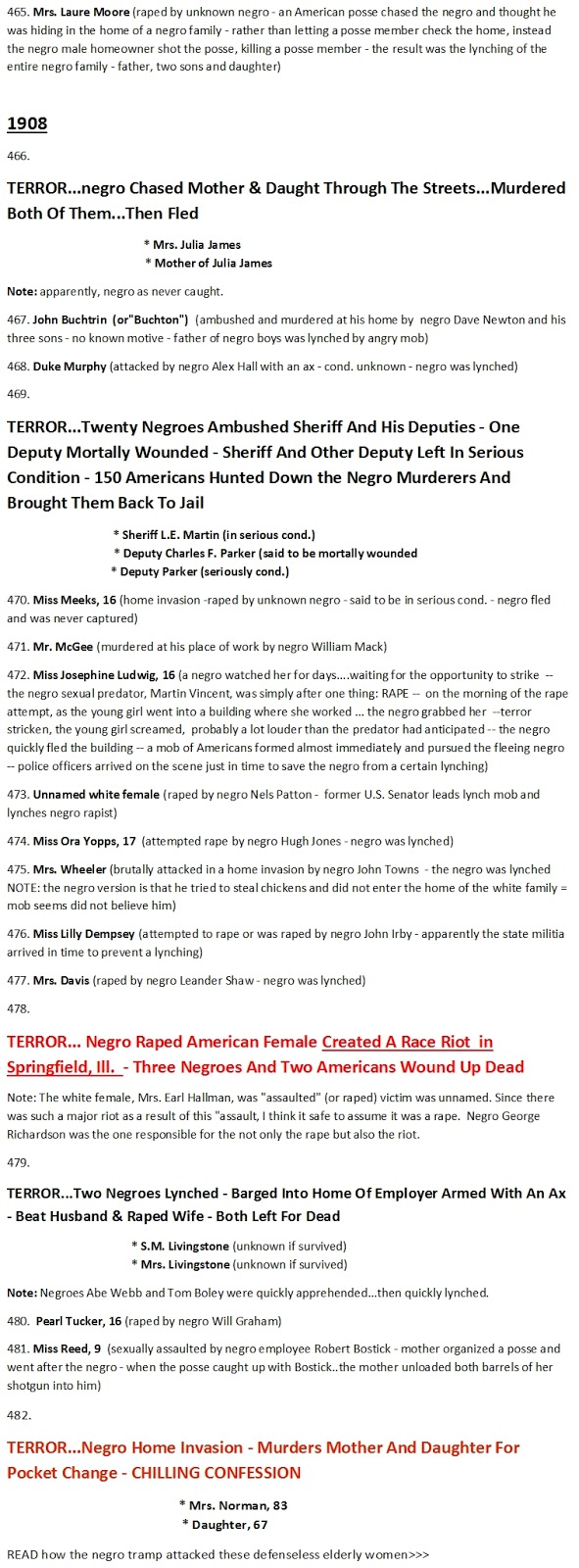 (1909) Miss Harmon (described as "young" - raped - negro lynched) source