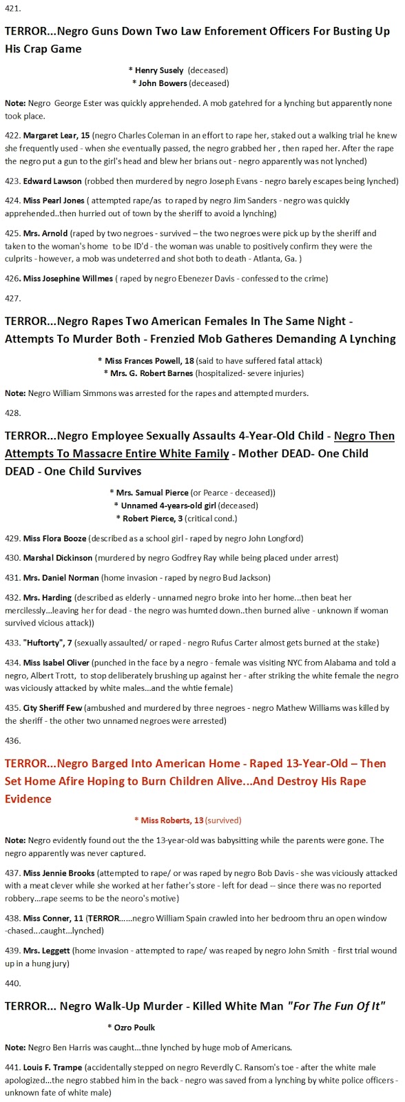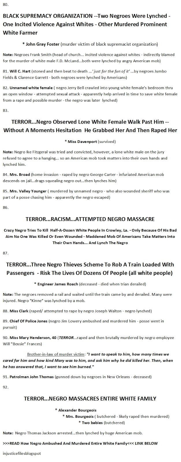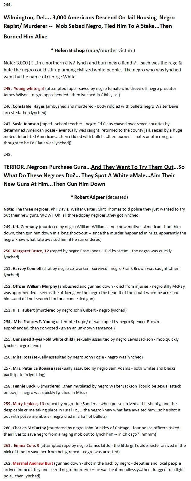Edwards, Ed Collins, Oscar Daniels, Delia Daniels, ganged raped her then murdered her - Edwards was lynched - state troopers prevented the other negro fiends from being lynched) source source